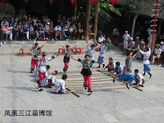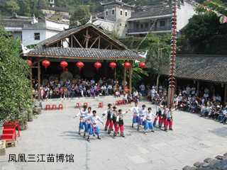 We also visited the “Sanjiang Miao Museum”, whose honory curator is the renowned Chinese nationality singer Ms. Song Zuying. Entering the front door, we saw the script of “Shanliang yonggan, zhihui qinlao” (mercy, brave, wise, and industrious) written by the Miao Dr. Shi Chaofu on US, shining under the red big plaque. This gave me strong interest to learn more on Miao studies. I know that 60% of the residents in this place are Miaos, producing many outstanding persons, from General Zheng Guohong, the national hero in the Opium War, to Xiong Xiling, the first elected Prime Minister in the Republic of China, to the literature great master Shen Congwen, traditional Chinese painting Master Huang Yongyu, and to the academician Xiao Jimei ......